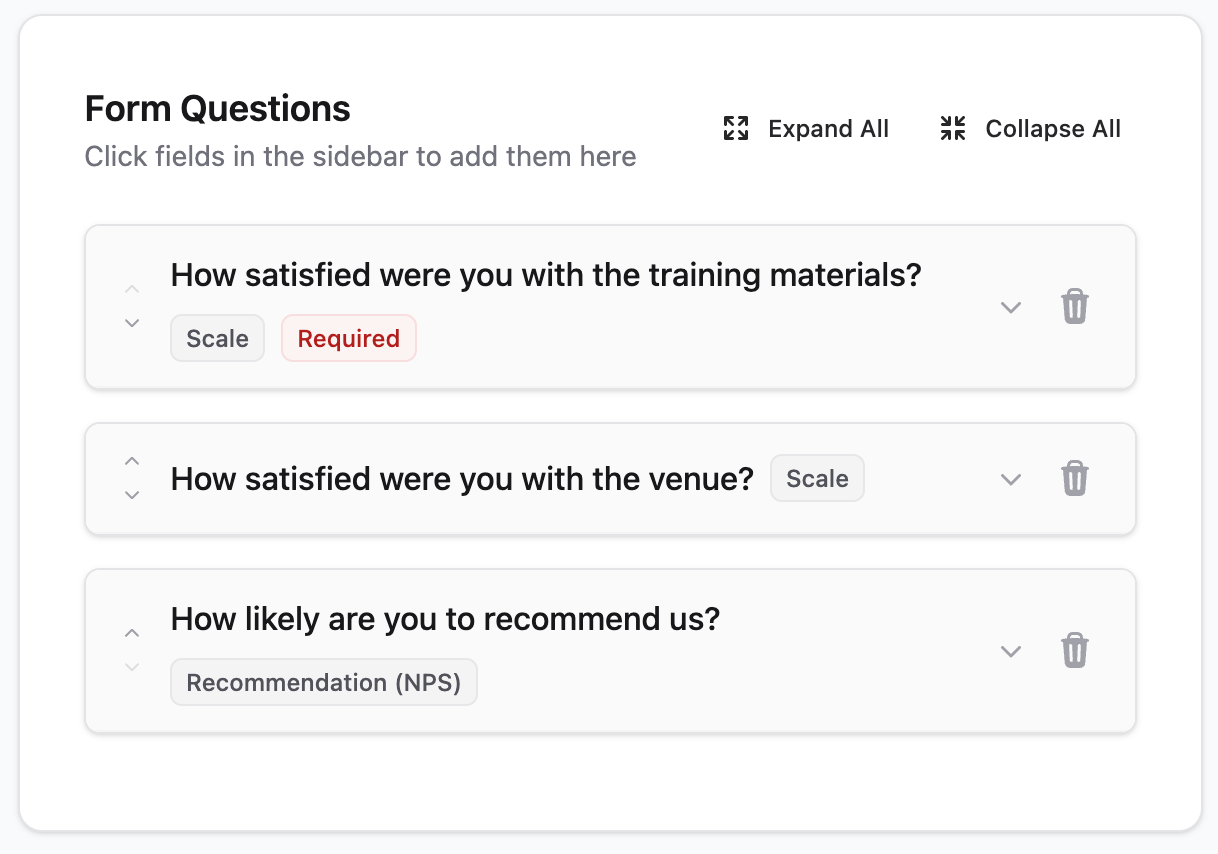 Feedback forms can be reused across many different courses, or you can decide to have a unique feedback form for each course or session you run.